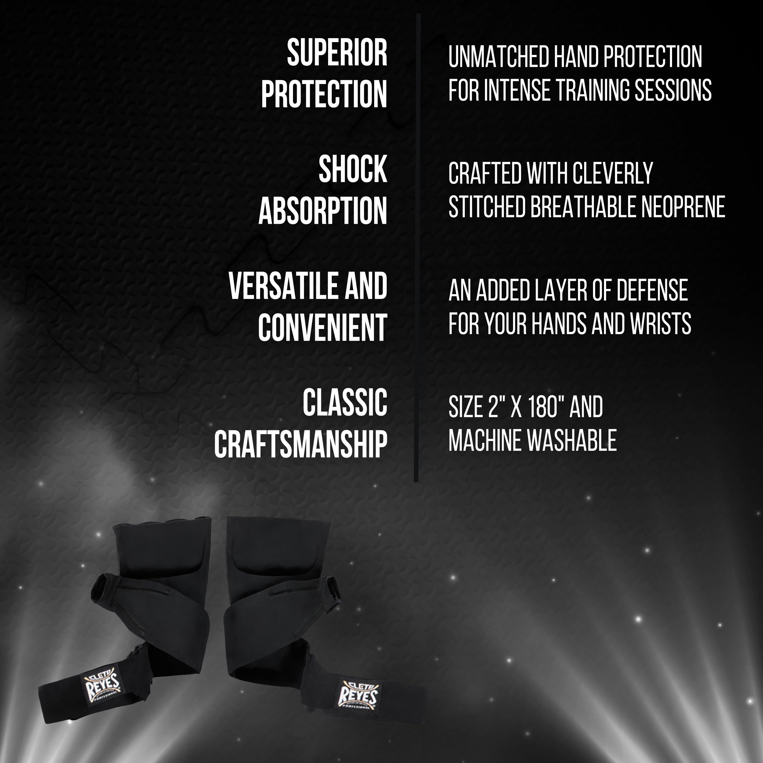 - CLASSIC CRAFTSMANSHIP - Crafted with a neoprene glove along with integrated polyester and cotton 180” wraps, The CLETO REYES Evolution Hand Wraps are a true testament to exceptional quality and design. Size: 2" x 180" Machine washable ensuring your boxing under gloves stay fresh for your next training session. Air Dry Only.